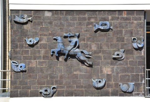 “GLAS-IN-BETON Een naoorlogse mediamix is het glas-in-betonreliëf.