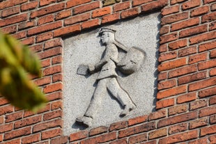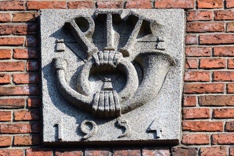 De zeven gevelsteentjes aan de lange gevel langs de Molengracht verbeelden de weg van een brief tussen het posten en de bezorging. Ze zijn gemaakt van gegoten sierbeton, naar een ontwerp van kunstenaar A. Diekerhof (1917-1997) uit Arnhem. Zie: https://nl.wikipedia.org/wiki/Albert_Diekerhof#:~:text=Hij%20vestigde%20zich%20als%20rond,voor%20een%20aantal%20protestantse%20kerken.