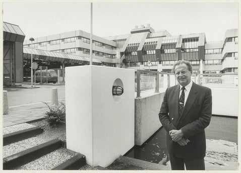 De laatste postdistrictdirecteur, de heer Hellinga, voor de nieuwbouw. In 1988 fuseerde het district met het postdistrict Amsterdam