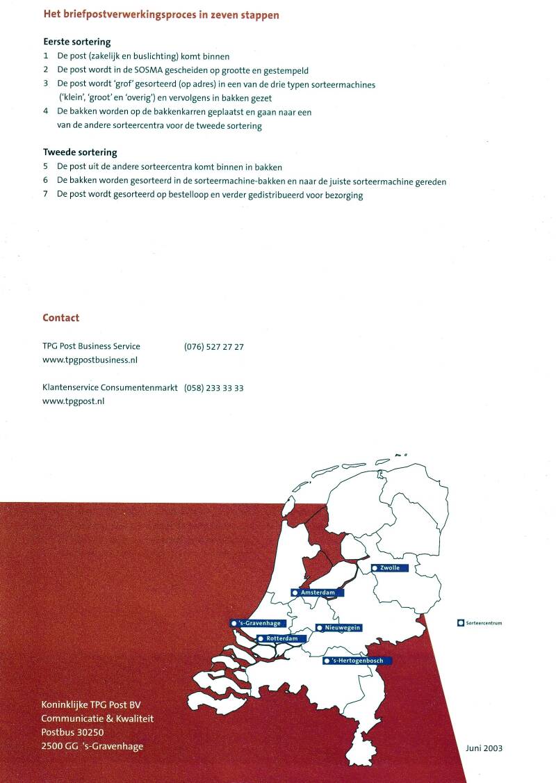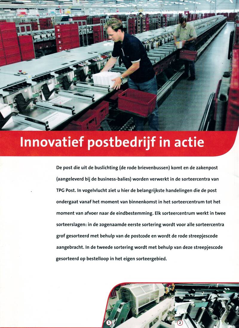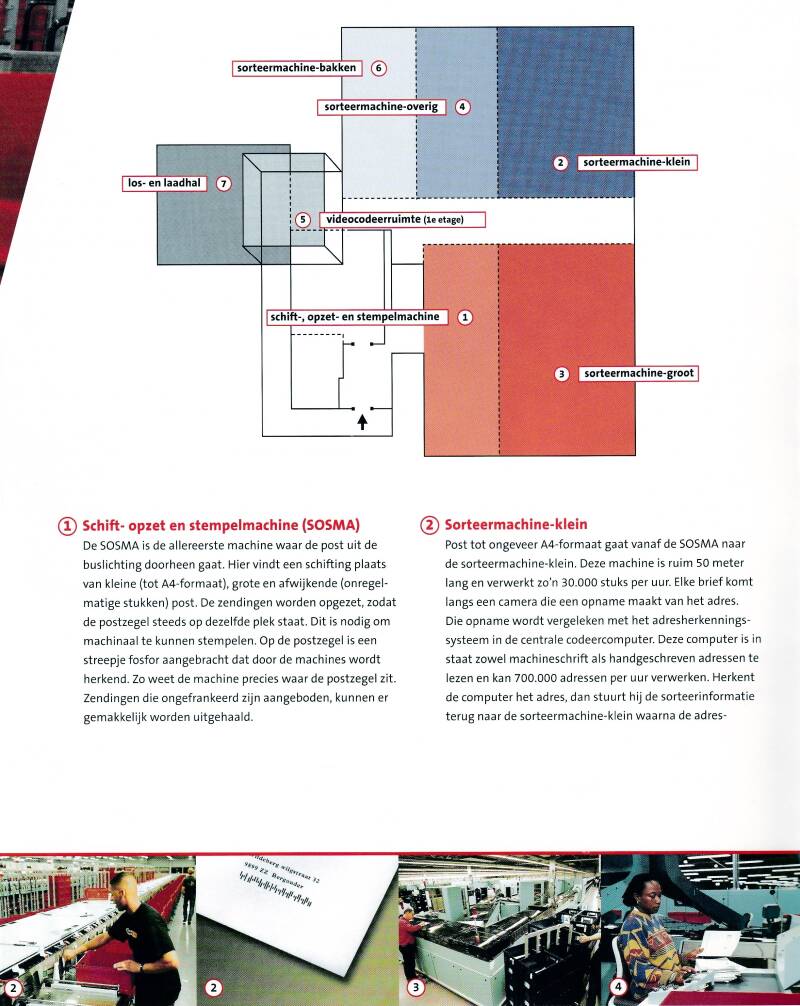 Een brochure uit 2003 geeft een heldere uitleg van de werking van een sorteercentrum brieven.