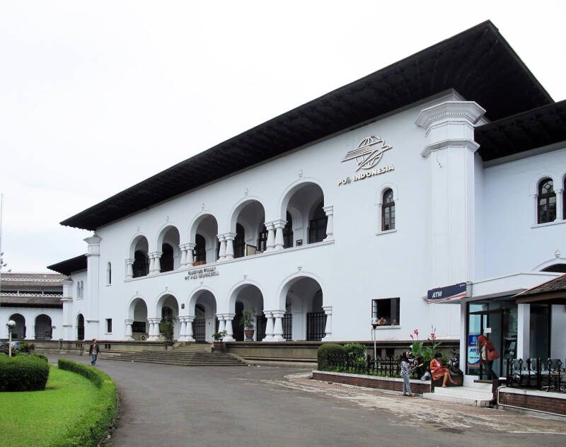Nederlandse architecten ontwierpen niet alleen postkantoren hier te lande, maar ook in de voormalige koloniën. Dus we besloten een poging te wagen erfgoedpostkantoren in Indonesië op te sporen. Normaal wagen we er ook een reisje er naar toe aan, maar dit keer moesten we het doen met geschiedenisboeken (met name vijf delen History of Posts & Telecommunications in Indonesia). We beschrijven eerst in het kort Indonesië en de Indonesische Postdienst. Daarna bespraken we in deel 1 het Nederlandse erfgoed in algemene zin. In deel 2 en dit deel 3 reizen we door Indonesië om de postkantoren terug te vinden.