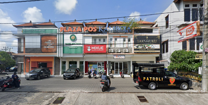 Het gebouw gelegen aan de Jalan Kamboja 28 in Denpasar vertoont alle kenmerken dat is omgebouwd tot een Pos Bloc. Weliswaar een postkantoor, maar ook ruimtes verhuurd aan allerlei bedrijven.
