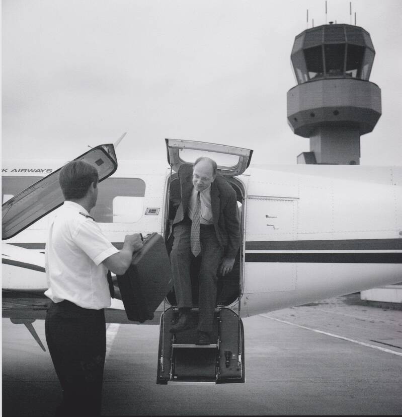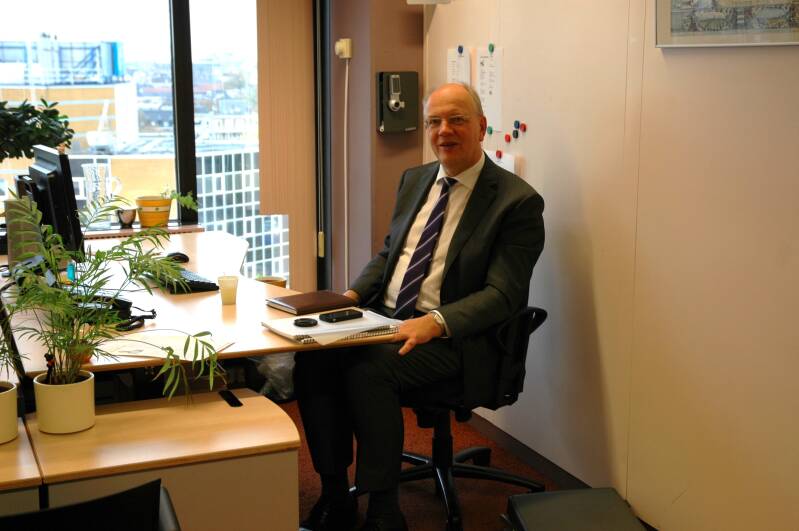Nog herinner ik me de opmerking van een collega: “Zeg kerel, hebben ze je in dit hok weggedrukt?”. Veel later heb ik dan maar een wat grotere hoekkamer in gebruik genomen. Heel erg leuk was het dat de eerste jaren nog de vliegverbinding met Quick Airways tussen Eelde en Zestienhoven in gebruik was. Ik heb het geturfd, ik ben 125 keer heen en weer gevlogen. In al die Groningse jaren was ik toch wel een of twee keer per week in Den Haag. Het gebouw was niet ideaal, maar het grote voordeel voor de medewerkers was de ligging. Bovenop het OV en op loopafstand van het gezellige centrum van Groningen. Pas heel veel later kwam ik er achter dat mijn voorgangers, maar ik ook, een grote zonde hadden begaan. De kleurstelling binnen het gebouw bleek kunst te zijn, ontworpen door de bekende kunstenaar Bob Bonies. We hadden de donkere ruimtes gewoon lekker fris laten overschilderen.