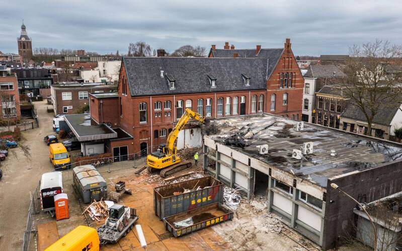 Rechts: In de Meppeler Courant van 9 februari 2022 zien we deze foto van slopers aan het werk aan het Zuideinde. Hier komen 32 zorgappartementen voor jongvolwassenen met een verstandelijke beperking.
