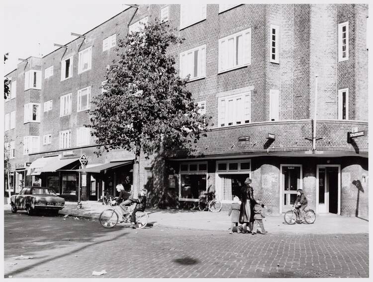 Linksboven: Het postkantoor in Amsterdam-Oost op het kruispunt van Sumatrastraat en Insulindestraat