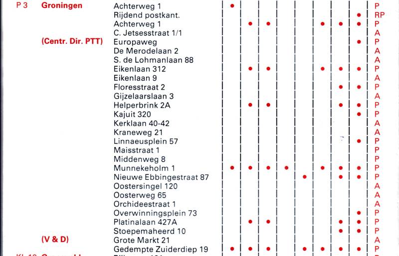 We misten ook nog een overzicht van alle bijpostkantoren en postagenten in de stad Groningen. Aan de hand van de kaart van de postkantoren uit 1989/1990 kunnen we nu dit overzicht bieden.