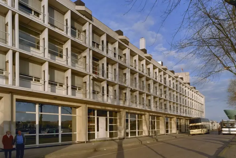 - Een laag langgerekt briefpostgebouw