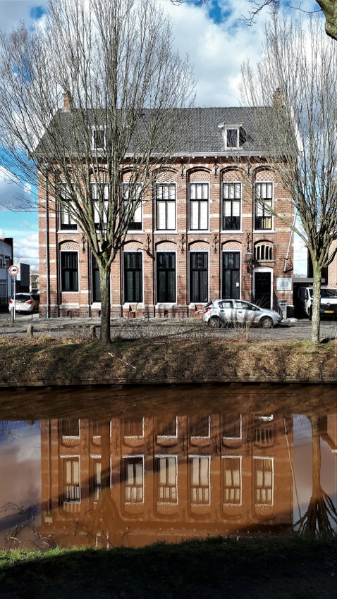 Woensdag 5 maart 2021 is een stralende dag. Fris, 6 graden is het om 11 uur als ik met mijn pakje brood en camera de deur uit ga. Van te voren heb ik al een route uitgeschreven. De allereerste halte is Sappemeer. Aan de Noorderstraat 302 ligt een statig pand dat verbouwd is tot een appartementengebouw. Op Huispedia vind ik dat een appartementje van 35m2 een waarde zou hebben van € 110.000. Dat lijkt mij hier veel. Het mooie symmetrisch gebouw telt drie dakkapellen, drie x drie ramen op de eerste verdieping en beneden twee statige deuren en zeven grote ramen. Het is gemeentelijk monument, net als het kantoor in het nabije Hoogezand ontworpen door de Rijksarchitect C.H. Peeters. Het is vergelijkbaar met het kantoor in Hoogezand, maar het heeft op de verdieping hardstenen kolommen tussen de vensters. Het gebouw stamt uit 1912, zo’n 15 jaar jonger dus dan het voormalige postkantoor in Hoogezand (Bron: https://www.dbnl.org).