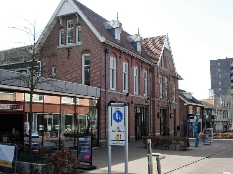 In Zevenaar komen we een van de laatste postkantoren van Peters tegen aan de markt op nummer 9. Het ontwerp is uit 1915 en het is een jaar later in gebruik genomen. Typisch een pand uit de latere periode, het oogt tamelijk sober. Een pand waar het blijkbaar wat moeilijk voor is een bestemming te vinden. “Zevenaar Post” meldt op 27 september 2016 dat op 2 juni 2009 het postkantoor sloot. De vraagprijs van PostNL Real Estate was toen € 1,2 miljoen, die zakte naan € 850.000. Tijdelijk zat er een “galerietje” in. In “De Gelderlander” van 26 juli 2017 lezen we dat het gekocht is door “Dutch Realestate” en dat het gereed wordt gemaakt voor kamerverhuur (althans 1e en 2e etage). Het bestemmingsplan moest daarvoor wel gewijzigd worden. Op “Funda in Business” lezen we nu dat de drie etages van 185 a 190 m2 te huur worden aangeboden. Onwillekeurig denken we toch aan de passages over de postkantoren uit het boek van 1953. Misschien is zo’n gebouw wat minder functioneel.