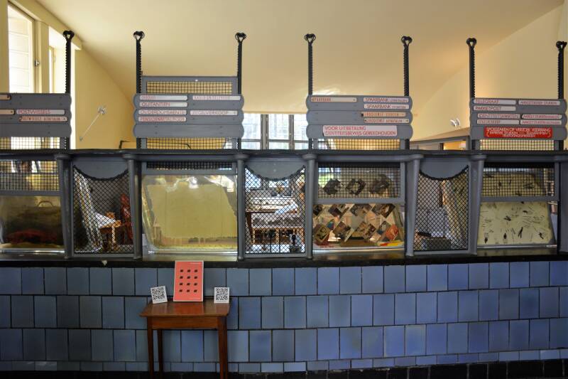 De loketbordjes ontworpen door vormgeven N.P de Koo. In gebruik van 1935 tot ver in de jaren 60
