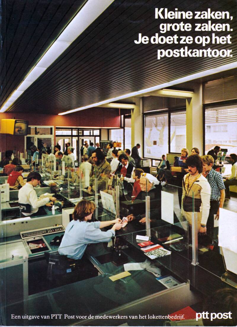 In 1980 liet Post voor alle medewerkers van het lokettenbedrijf een informatieve brohure maken. Oplage 25.000. In de brochure zien we de veranderingen in het interieur. Boven het lokettenfront Den Haag Badhuisstraat. Achter glas. Rechts zien we enige afbeeldingen van de nieuwe inrichting achter gepantserd glas.