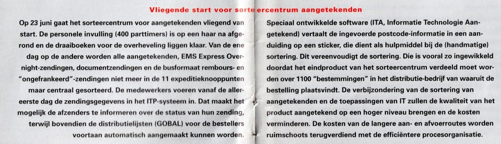 Het inschrijven van aantekenen was nu helemaal uit den boze, bij elke processtap werd een scan gemaakt en de ontvanger en afzender geïnformeerd.