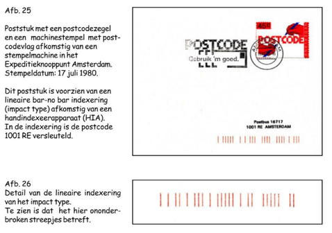 EW schrijft: “In het Dr. Neher Laboratorium - de PTT-proeftuin in Leidschendam waar ook de ZEBRA, een van de eerste computers van Nederland – gebouwd was, hadden ze al uitgedokterd dat computergestuurde machines de postsortering konden overnemen. Aan de hand van streepiescodes met adresinformatie wisten die machines waar de post naartoe moest. Die machines 'lazen' streepjes, maar nog geen letters en cijfers, laat staan als die op een envelop waren gekrabbeld. Aan het begin van de keten moesten daarom mensen de adressen vertalen naar de streepjestaal. Om te voorkomen dat die postbeambten complete adressen zouden invoeren of alle bijhorende codes moesten kennen, kreeg het team de opdracht om een simpele code te bedenken die Nederlanders zelf konden toevoegen aan hun adres. Die code konden de ambtenaren snel invoeren in printers die er streepjescodes van maakten.”